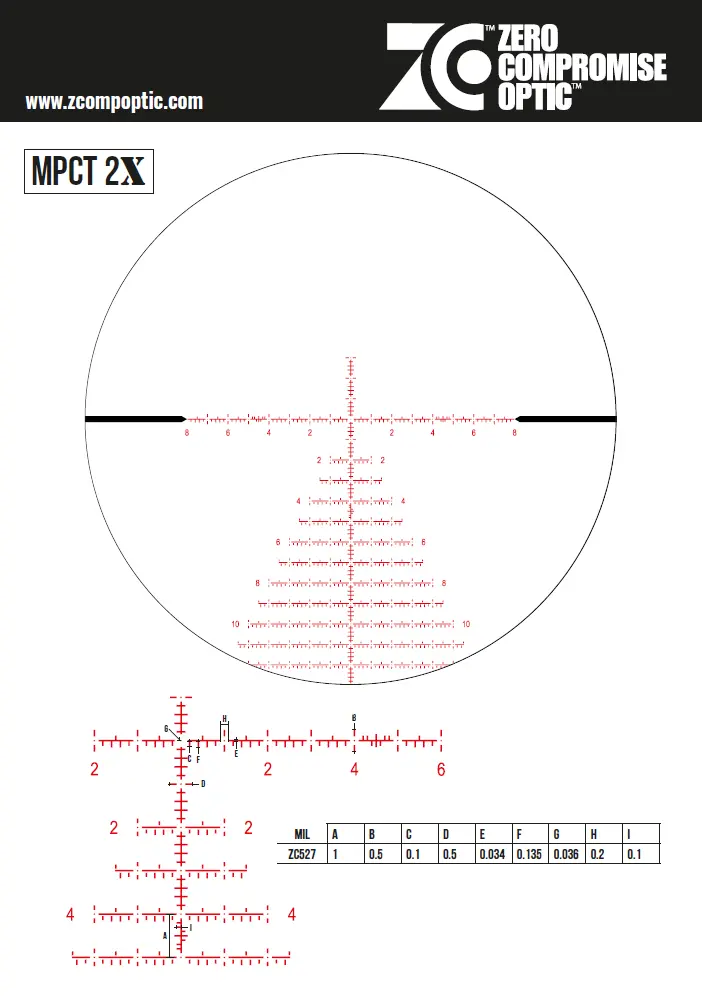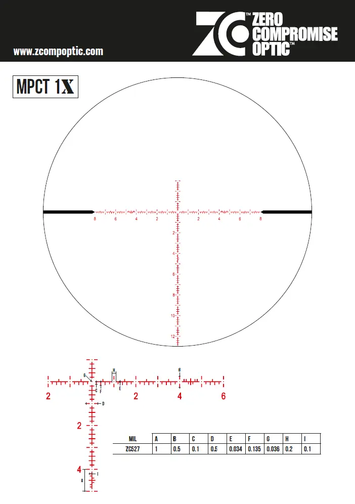 The reticle is purpose-built for modern precision rifle competition. It offers clean, precise MIL subtensions, fast and intuitive holdovers, and a balanced sight picture without unnecessary clutter. This makes the ZC527 equally effective under time pressure and during deliberate precision shots at distance.